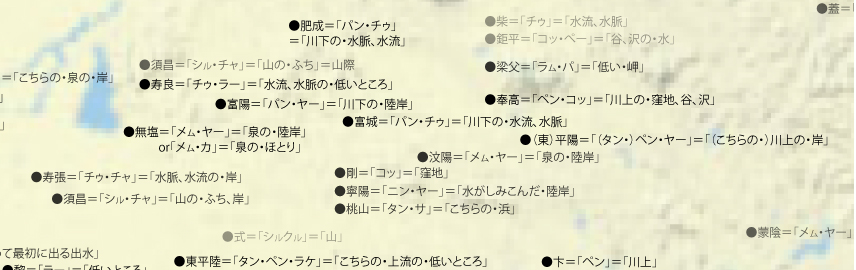よって、今回以降は、これまでの作業を総括して、確度の高い解釈をまとめてご紹介させていただこうと思います。中国漢代の県名の多くが縄文語(アイヌ語)由来であったことがはっきりと見えてきます。ぜひ、確認してみてください。
