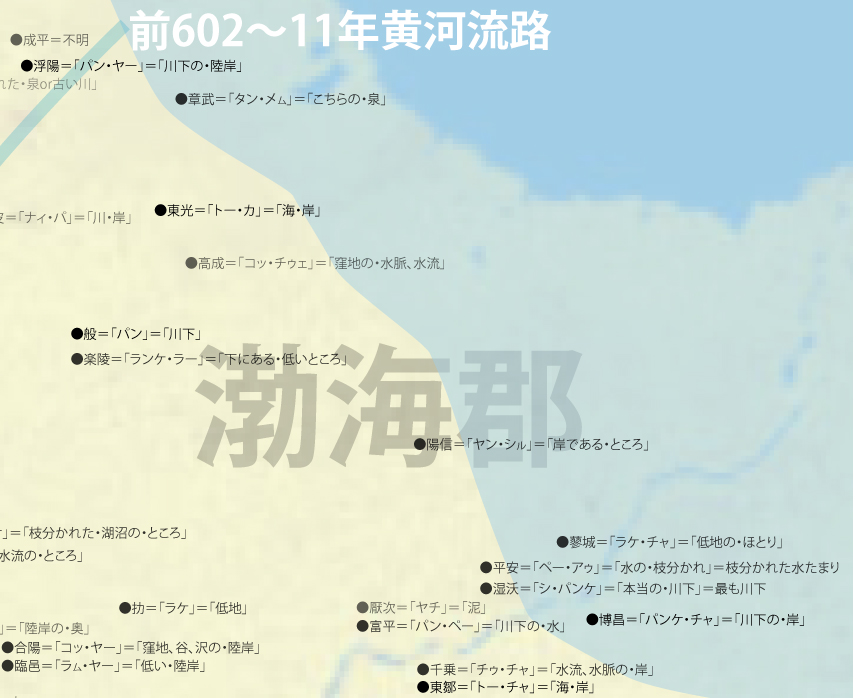 【黄河再下流域、渤海湾沿岸の「水辺」「低地」の解釈】