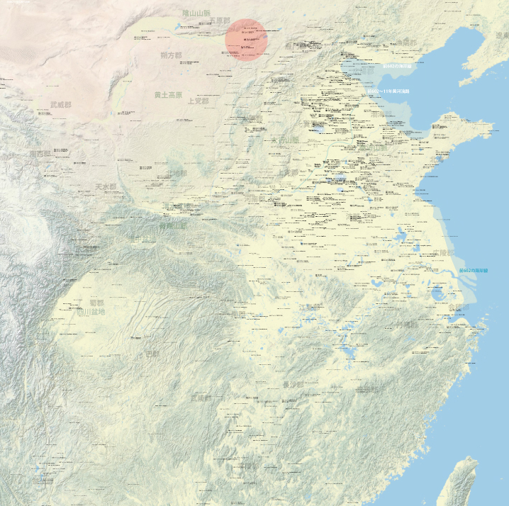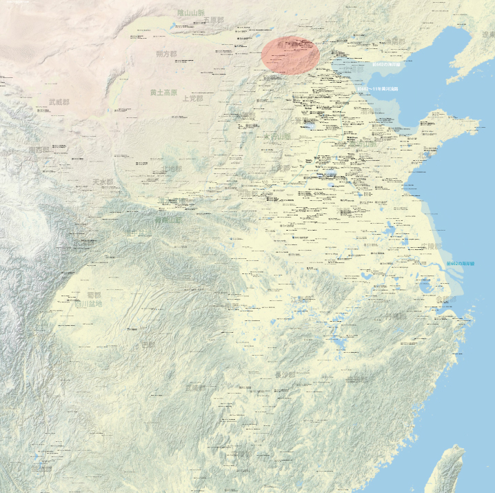 ※山西省最北部、大同盆地周辺の詳しい解釈は幽州代郡(第百三十四回)、并州雁門郡/朔方郡(第百六十九回)の項をご参照ください。