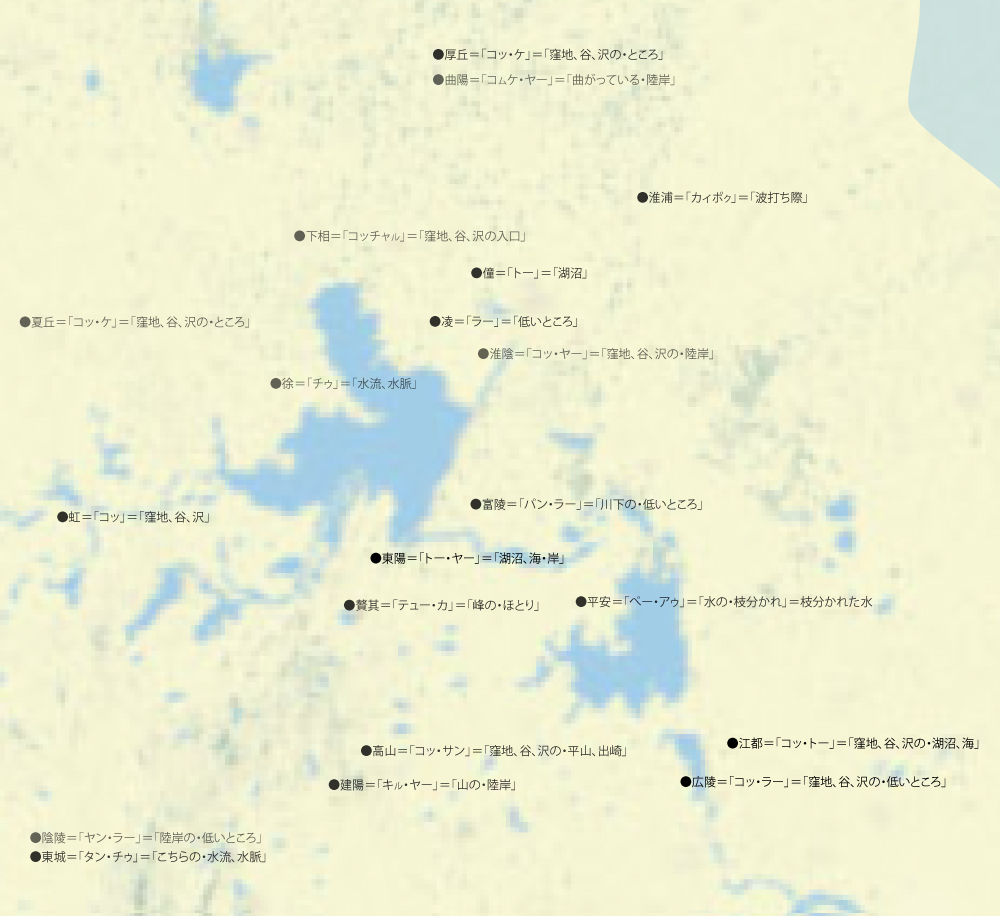 遼東半島に関連する解釈。「低地」「出崎」の解釈で地勢と一致、「列陽」の解釈とも辻褄が合います。