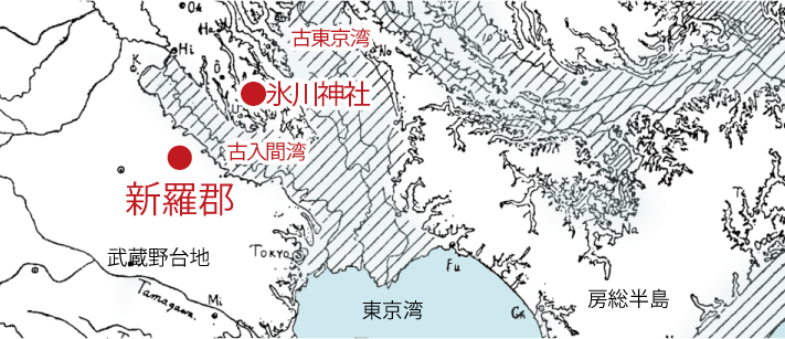 ■新羅郡の位置と縄文海進 ※武蔵野台地北端