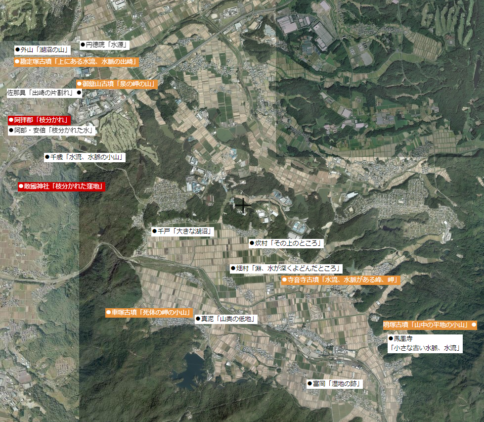 ■名張市美旗の主要古墳と周辺地名の縄文語解釈