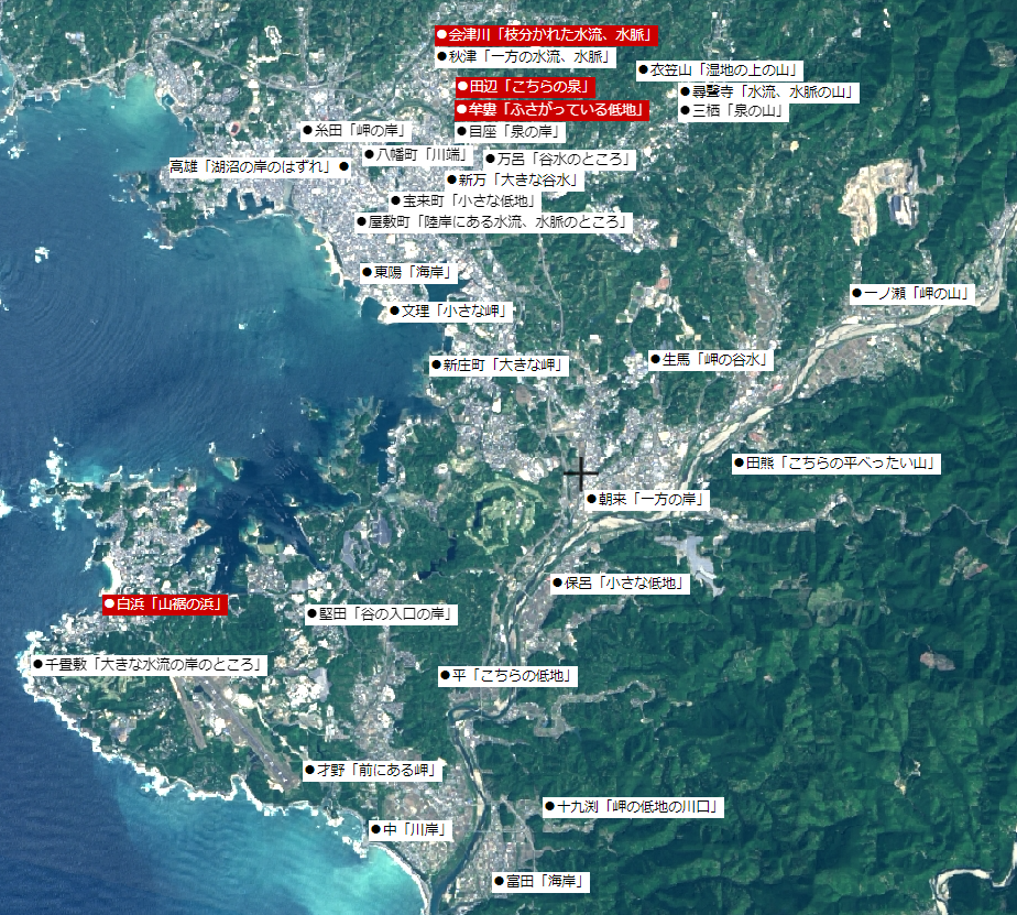 ◎縄文語:「高畠(高畑)」=「テュ・カ・ハッタル」=「岬の・ほとりの・淵、水が深くよどんでいるところ」