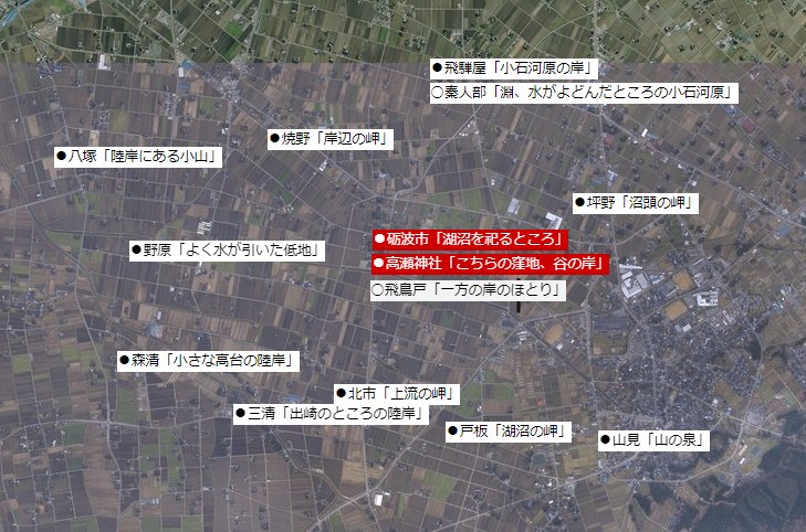 ◎縄文語:「飛騨屋」 =「ピタル・ヤ」=「小石河原の・岸」※高瀬神社の北方。 秦人部の解釈と符合。