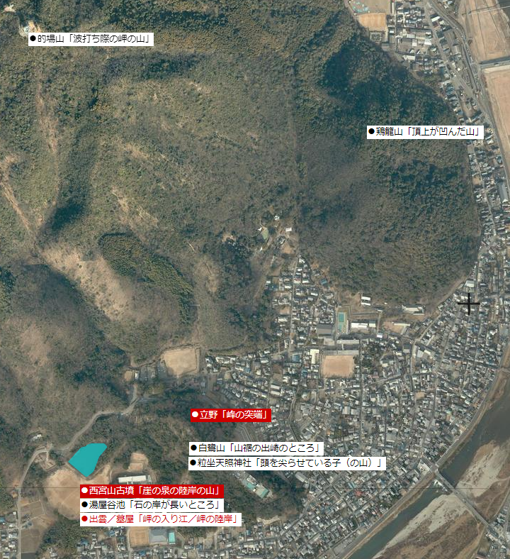 ◎縄文語:「的場山」 =「マーテュ・パ・ヤマ」=「波打ち際の・岬の・山」※揖保川沿いの山。