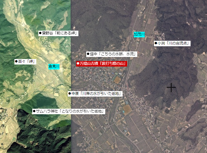 やはり、この地域も縄文語地名なので、上代日本語を話す北方系渡来人がいたとするよりも、縄文語を話す南方系先住民あるいは南方系渡来人がいたとする方が自然です。つまり、万燈山古墳から出土した宝物がたとえ朝鮮半島由来のものであっても、それをもたらした人々は朝鮮半島南部の倭人と縄文語を共有する南方系の人々であった可能性が高いということになります。基本的に縄文語を共有する朝鮮半島南部の人々と倭人を区別するのは困難です。