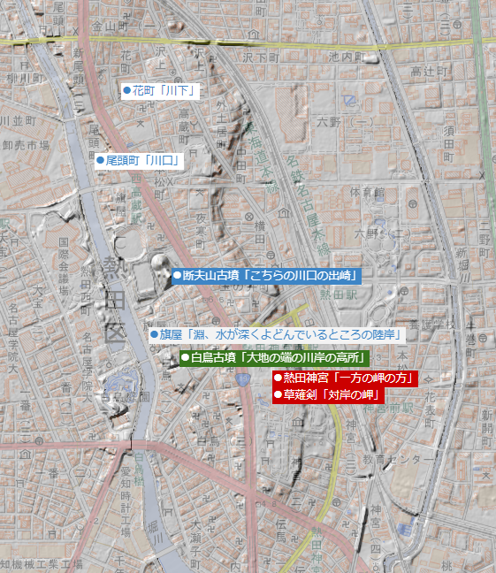 「白山」は 第二百九十回コラムで詳しく取り上げています。加賀の「白山」も含め、日本全国「白山神社」の多くは「浅い平山」の立地、あるいは「浅い平山」を望む地勢です。また、濃尾平野の「白山神社」の場合は、かつて濃尾平野に深く湾入していた伊勢湾の浅い出崎を指したものと思われます。