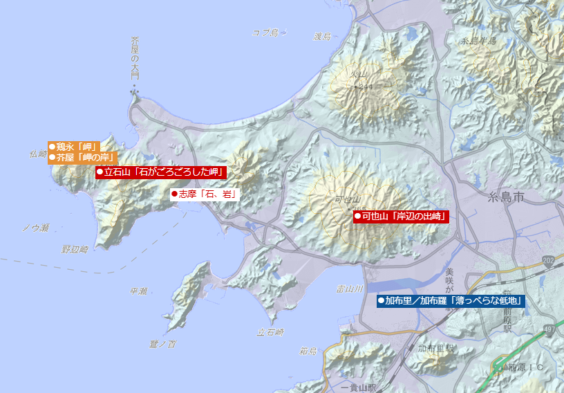 「糸島」も類似語源の可能性があります。