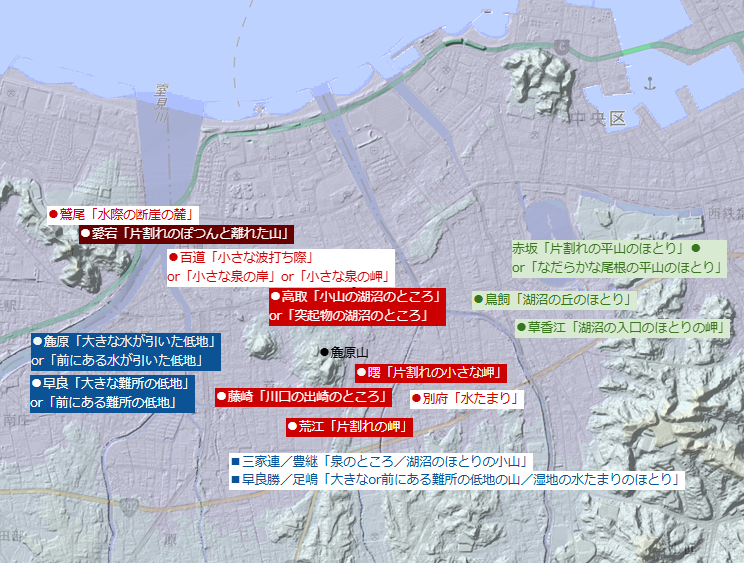 以下その他周辺地名。いずれも地勢と一致しています。