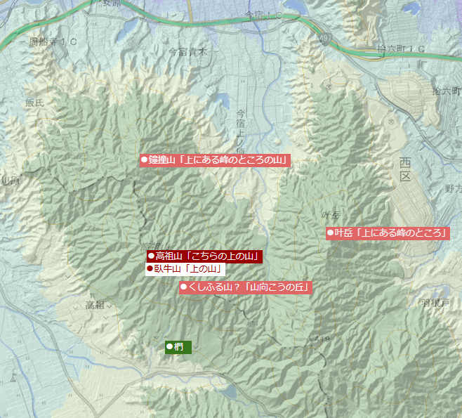 ■高祖山周辺の縄文語解釈 ※上にある山で一致。