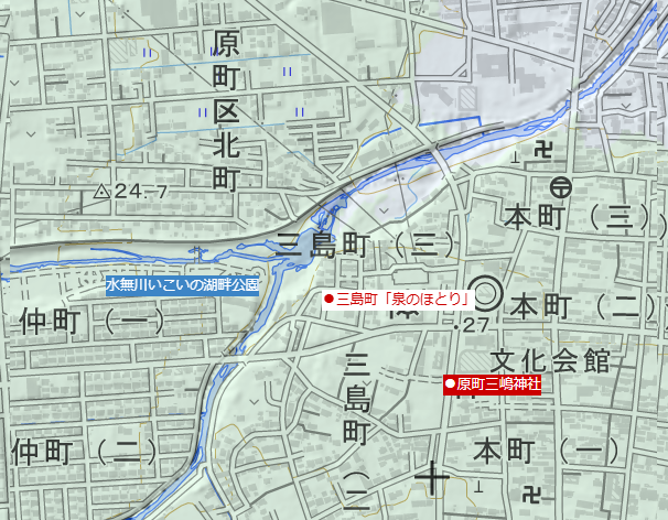 ■原町三島神社(相馬市原町区本町)の縄文語解釈 (※国土地理院の電子地形図を加工して作成)
